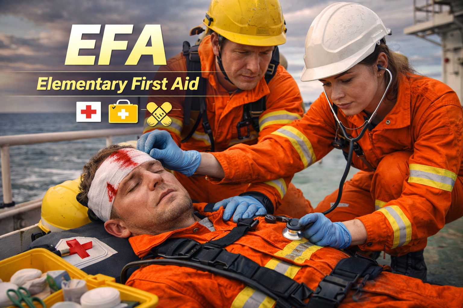 The Elementary First Aid (EFA) course provides seafarers with essential first aid knowledge and emergency response skills required to handle medical situations onboard, ensuring immediate care and safety in critical conditions.